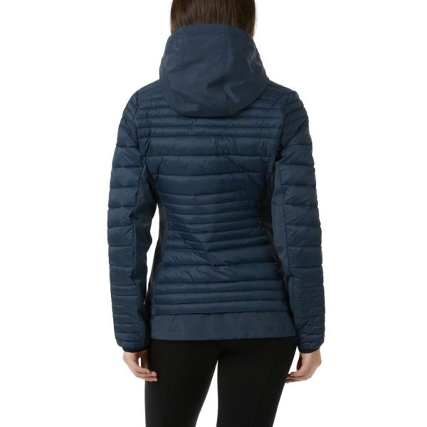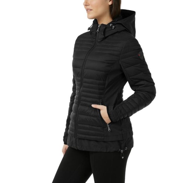 • Stylish women’s channel quilted mixed-media puffer featuring a detachable hood for versatile wear.